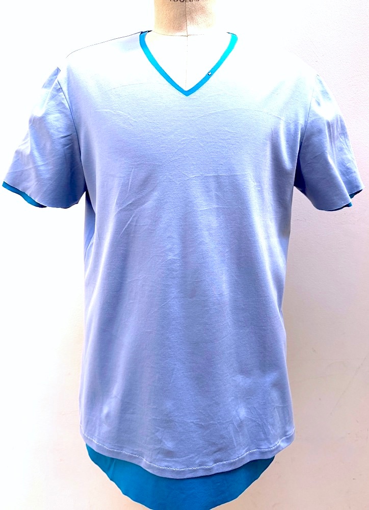 MT3105【予約商品】PONTI ROMA (2PAC SET) LAYERED V-NECK S/S T-SHIRT #LT.BLUE x TURQUOISE