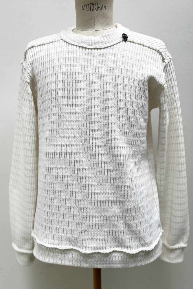MC3046 STRIPE CORD KNIT PULLOVER #01 WHITE
