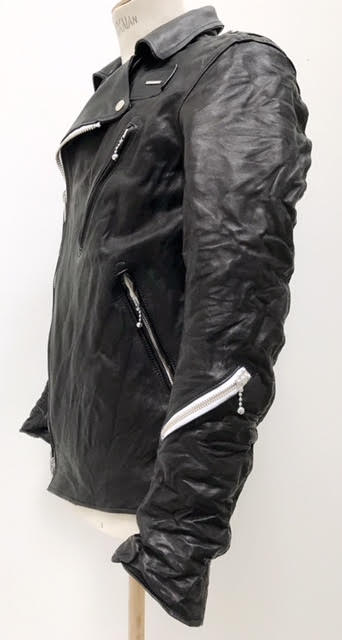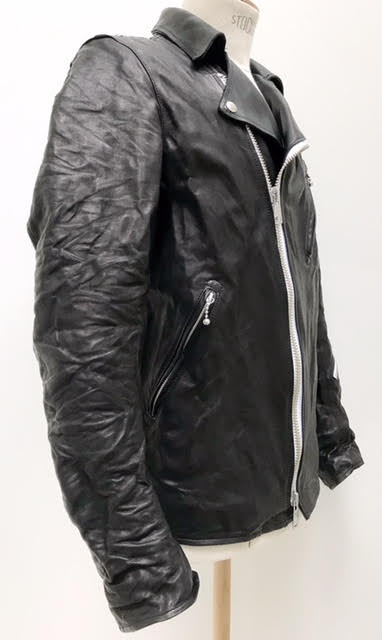 フランシスト・モークスの定番アイテム、ホースハイドレザーを採用したダブルライダースの最新モデル。0.6mmホースレザーオイルヌメ革と、見返しパーツには同シリーズのバッグやベルトに採用している1.6mm厚を裁切り 処理した拘りのディテールを持つ。オリジナルパーツやCLIX製ジッパー、柔らかく適度なシワをキープしたヴィンテージ 感溢れる仕上げ加工とタイトなパターンやアクションプリーツを取り入れた着心地の良さが最大の魅力の逸品。