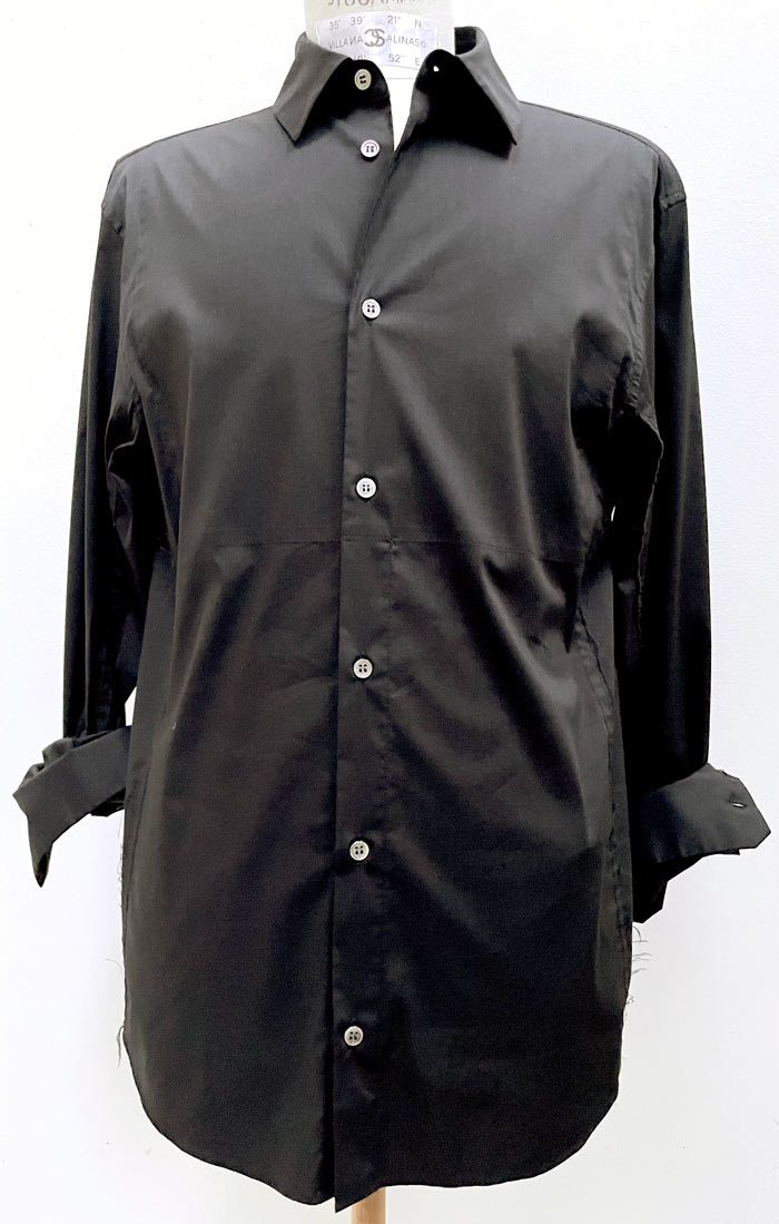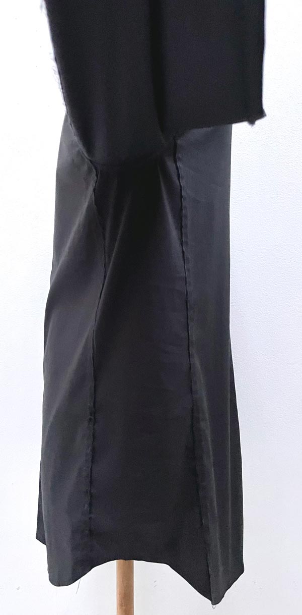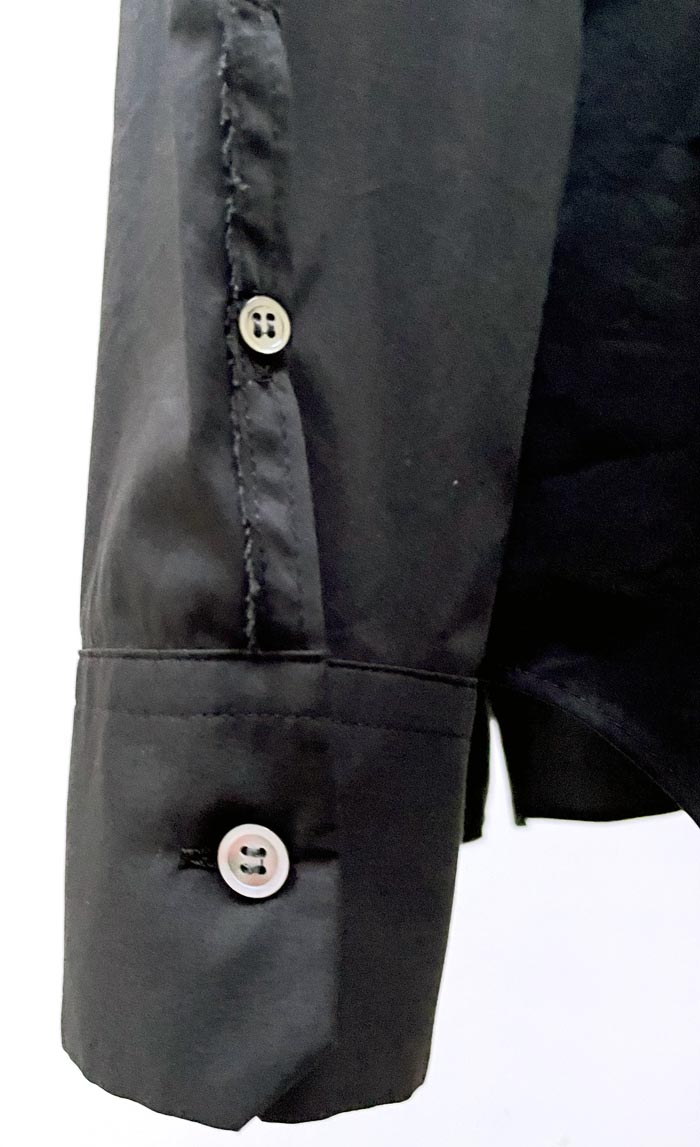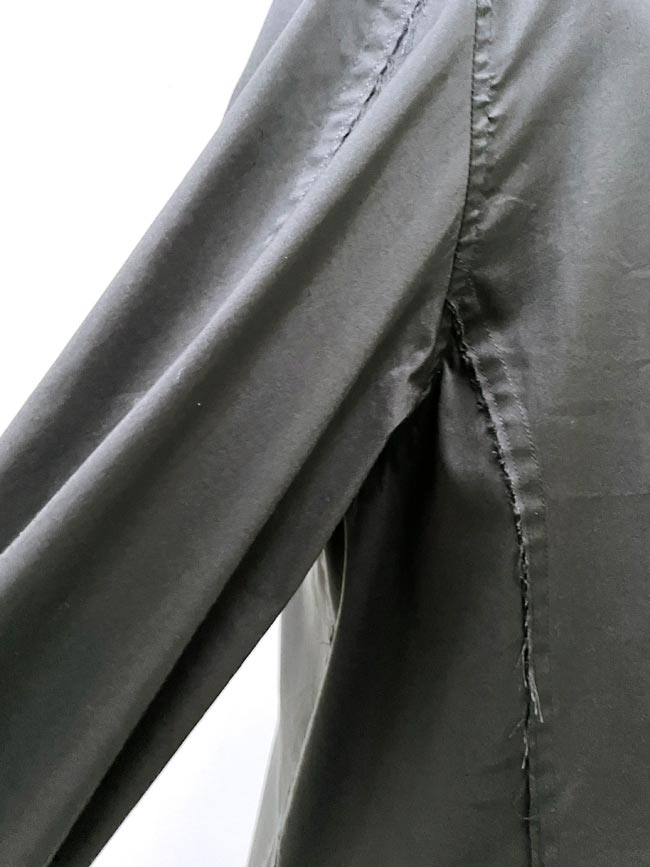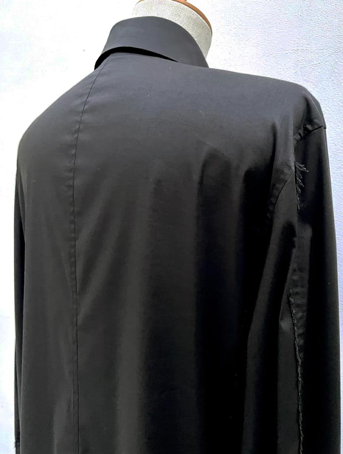 シンプルでドレッシーな縫製、デザイン仕様の中にも、見頃から内袖迄を裁ち切りで切り替えたグランジテイスト(反骨精神)も忘れてはおりません。