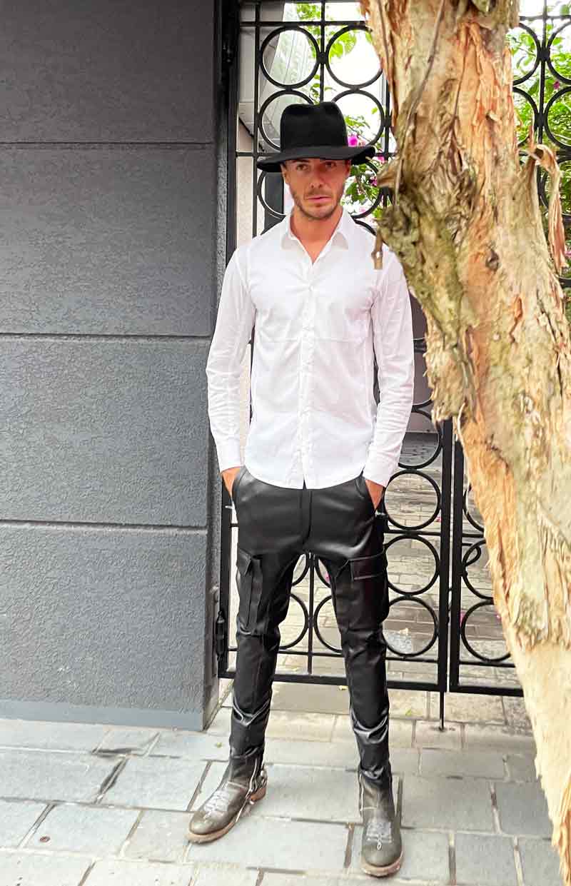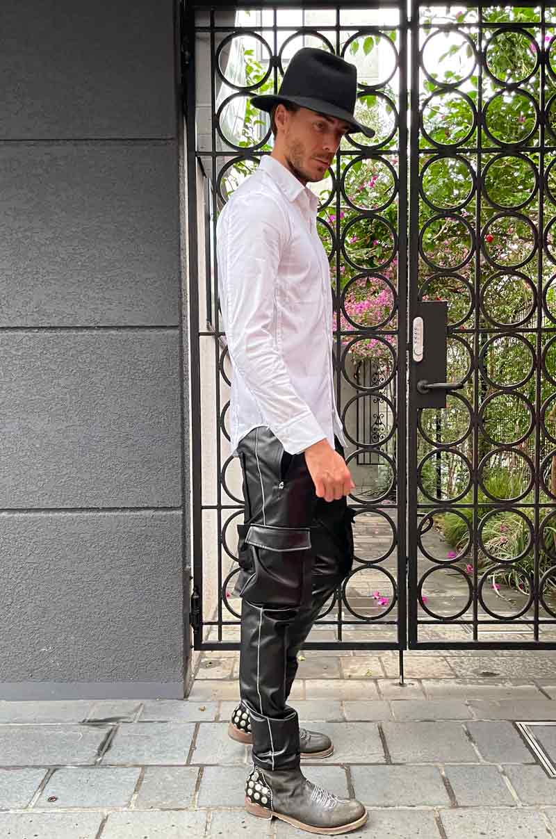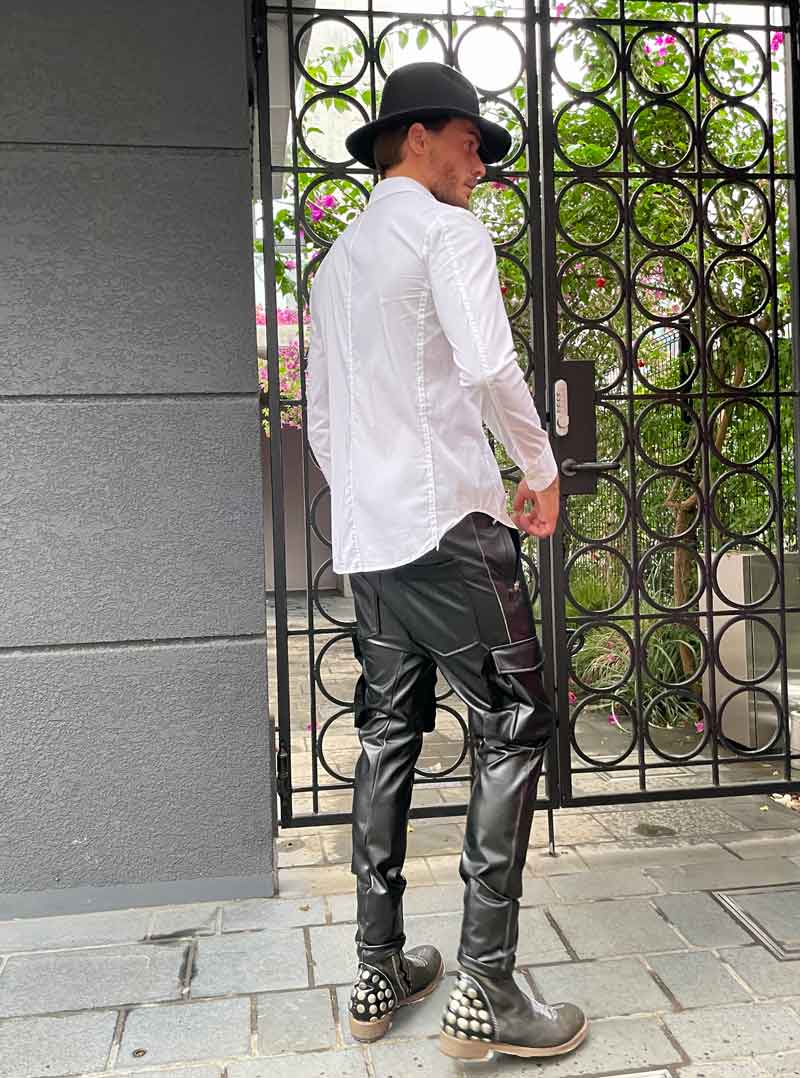 前身頃(胸当て布パーツ)が2重構造仕様で、胸板が厚く見え透けも無く、自然なウエストシェイプラインが美しい為、大人の男性らしさを醸し出します。