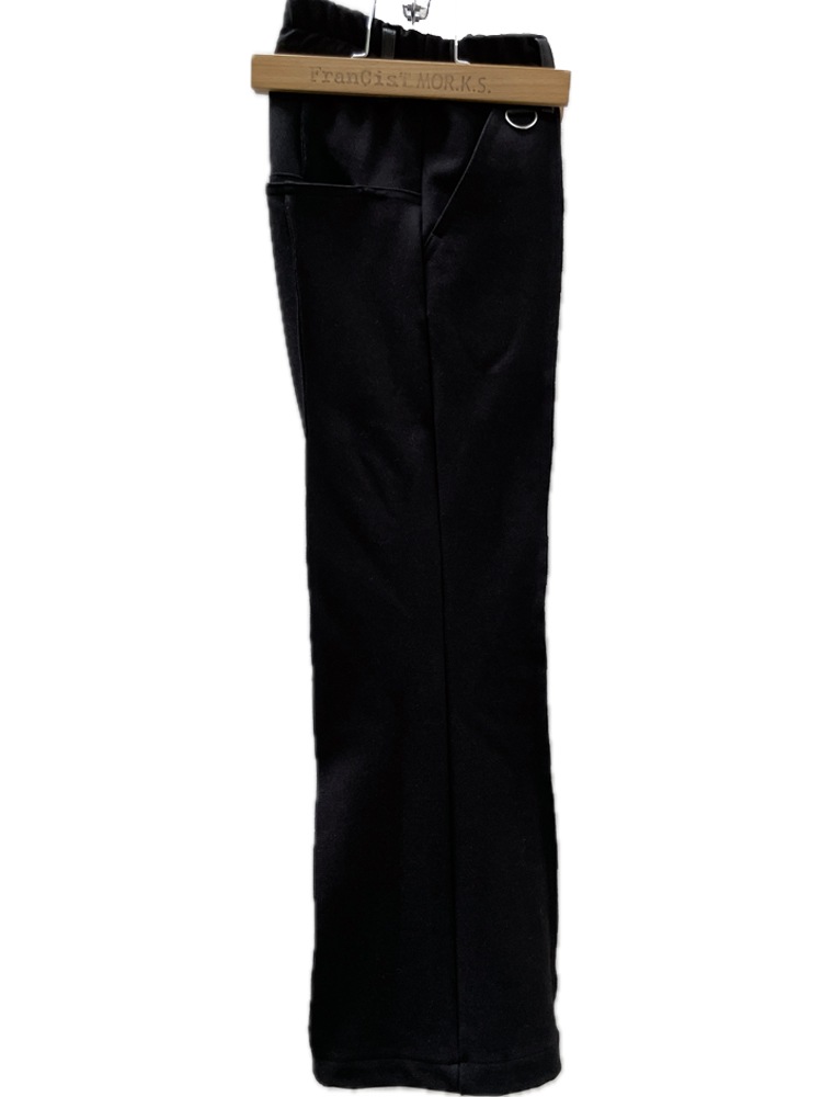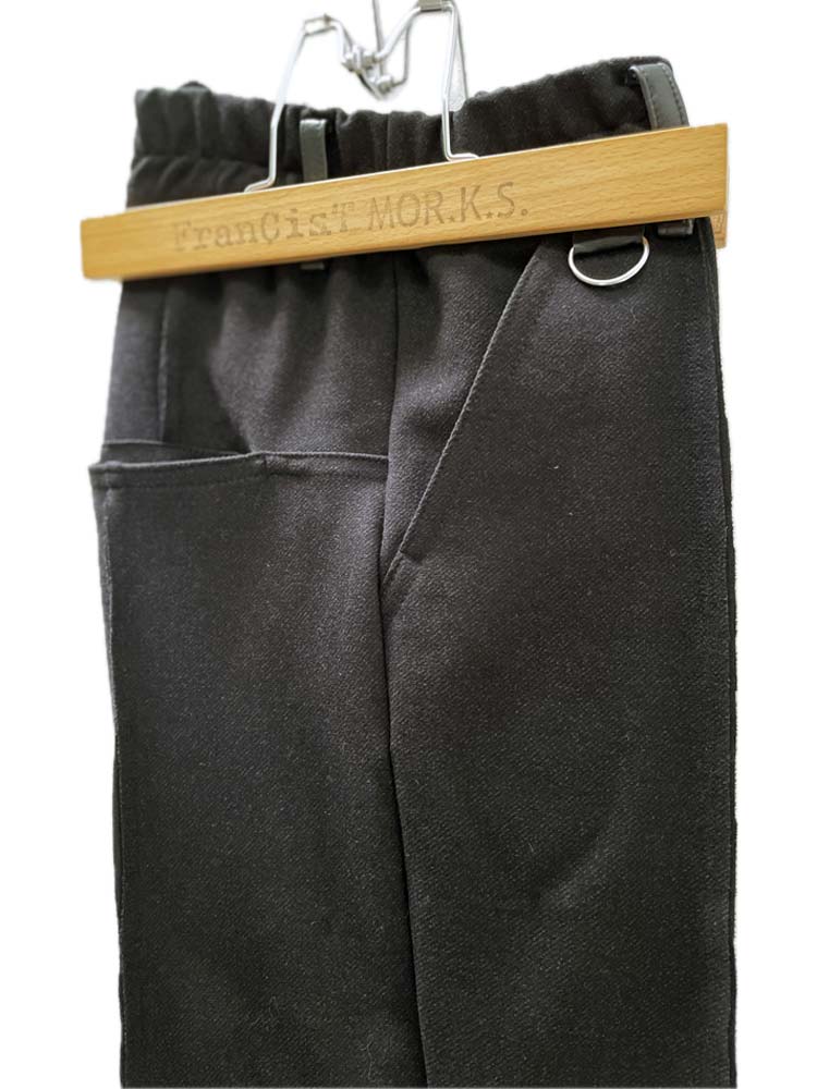 レンチング社ECOVERO®トレーサブルレーヨンを使用した中肉のハイテンションストレッチ。しっとりモチモチ、抜群なストレッチ性でしっかりとした腰もある素材の特性を活かし、センタークリースラインを何と裁ち切りで内外側2枚を重ね合わせ、カットオフ・ピンタック仕様(裁ち切り2枚が重なり合い断面が立つ為、前後のセンターラインを誇張させる効果大)スッキリ細く見えて効果的な新しいシルエットが完成。