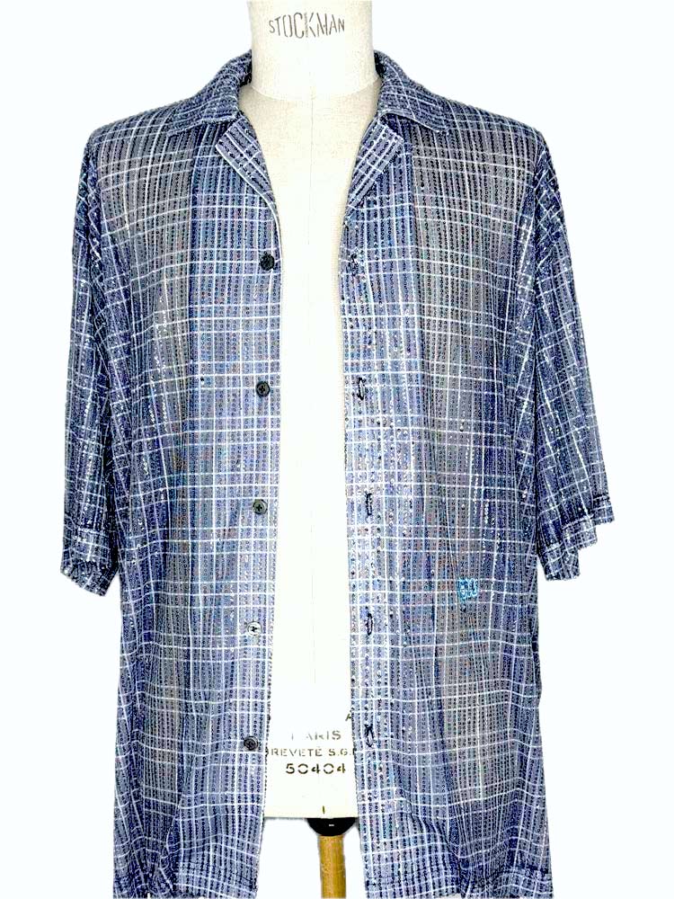 このシャツの特長は、全面に施された美しい透明なスパンコールです。光の加減でキラキラと輝き、さりげなく存在感をアピールします。デイリーユースにも特別なイベントにも最適で、合わせるボトムス次第で様々なスタイルを楽しめます。