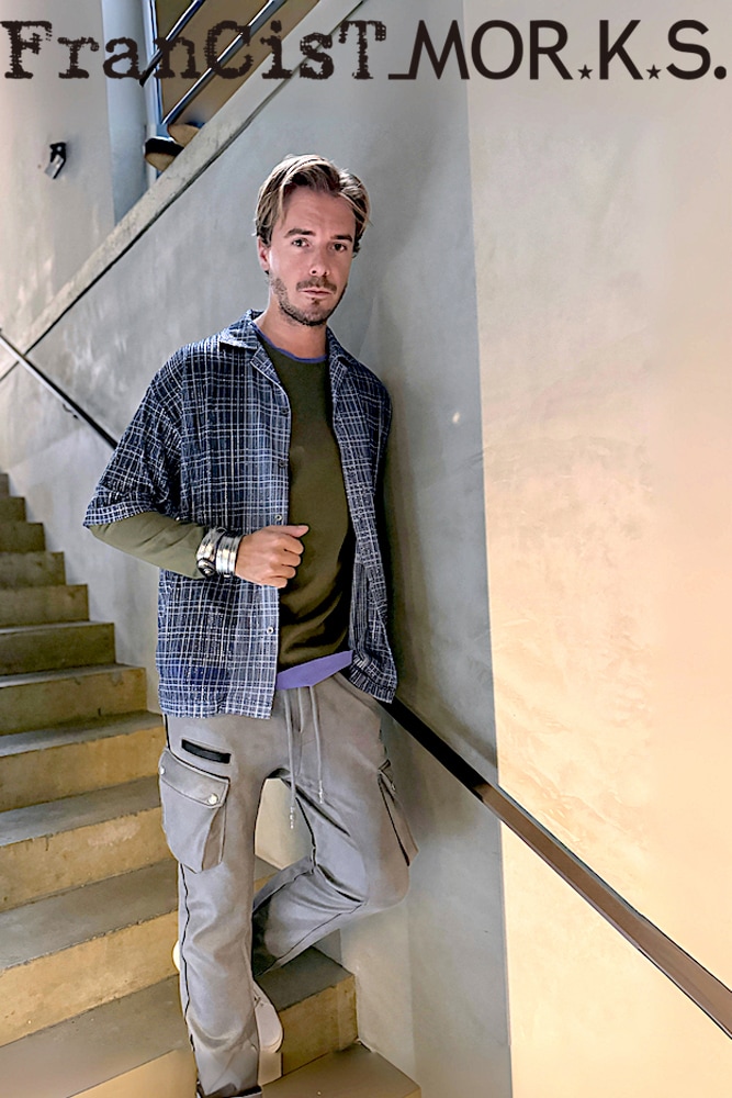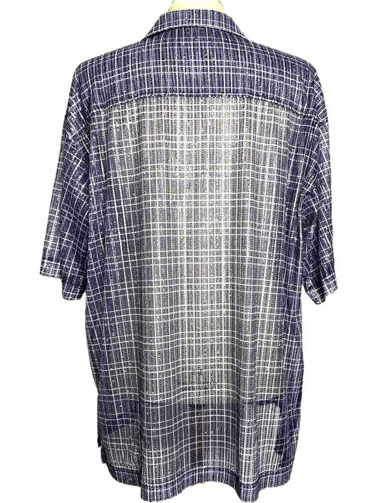 MS3117 COOL SEQUINS CHECK OPEN COLLAR S/S SHIRT #NAVY x WHITEは、スタイリッシュで洗練された印象を与えるアイテムです。涼しげなネイビーベースにホワイトチェックのデザインが映え、どんなシーンでも活躍間違いなしです。