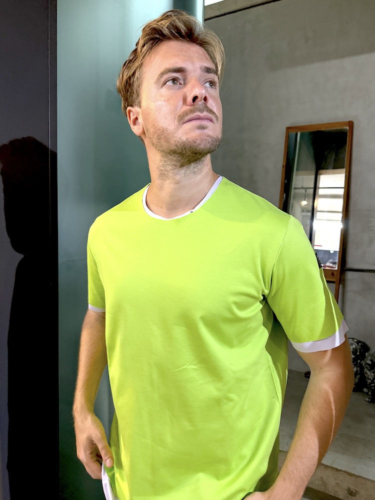 洗練されたスタイルを求めるあなたにぴったりな、MT3119 PONTI ROMAのレイヤードCネック半袖Tシャツ。新色 ライムイエローxライラックの美しい配色が特徴で、どんなコーディネートにも新鮮さを加えます。この2パックセットで、季節を問わず通年通して大活躍します。