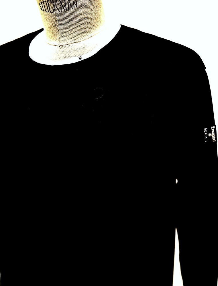 そしてポイントは、インナーTシャツのクルーネック左襟元に、さり気なく美しく輝く3Dカットの星型スワロフスキー・クリスタル(ヘマタイト鏡面シルバー)が!!It's Perfect!お洒落です!