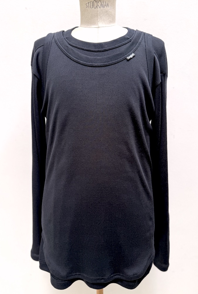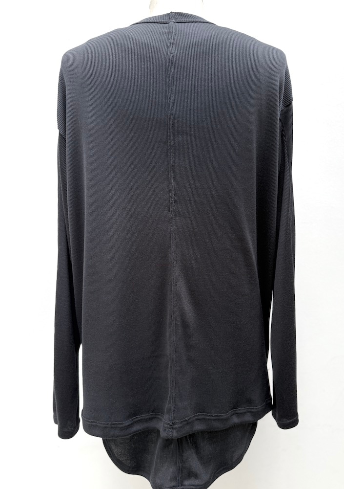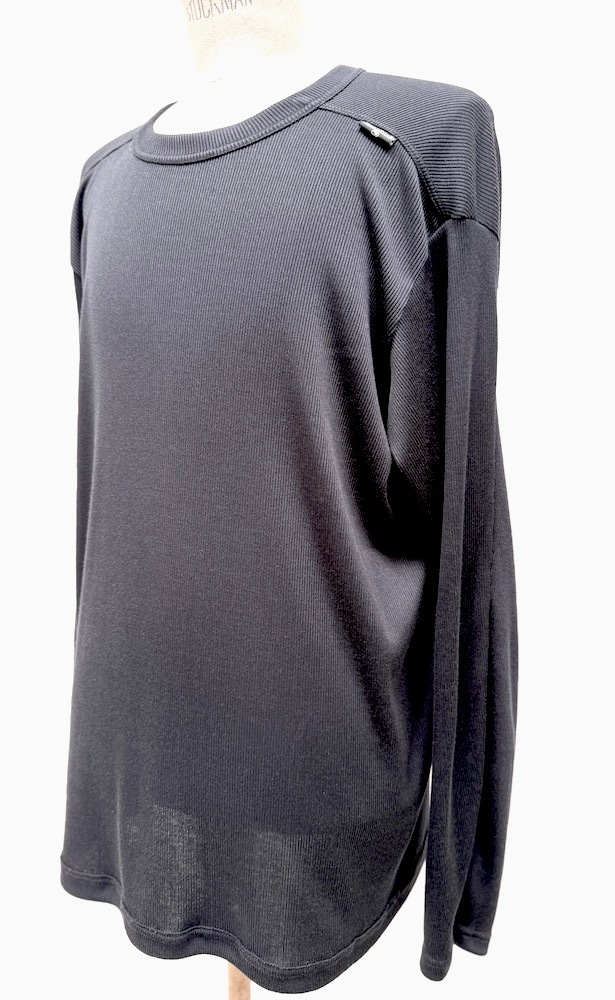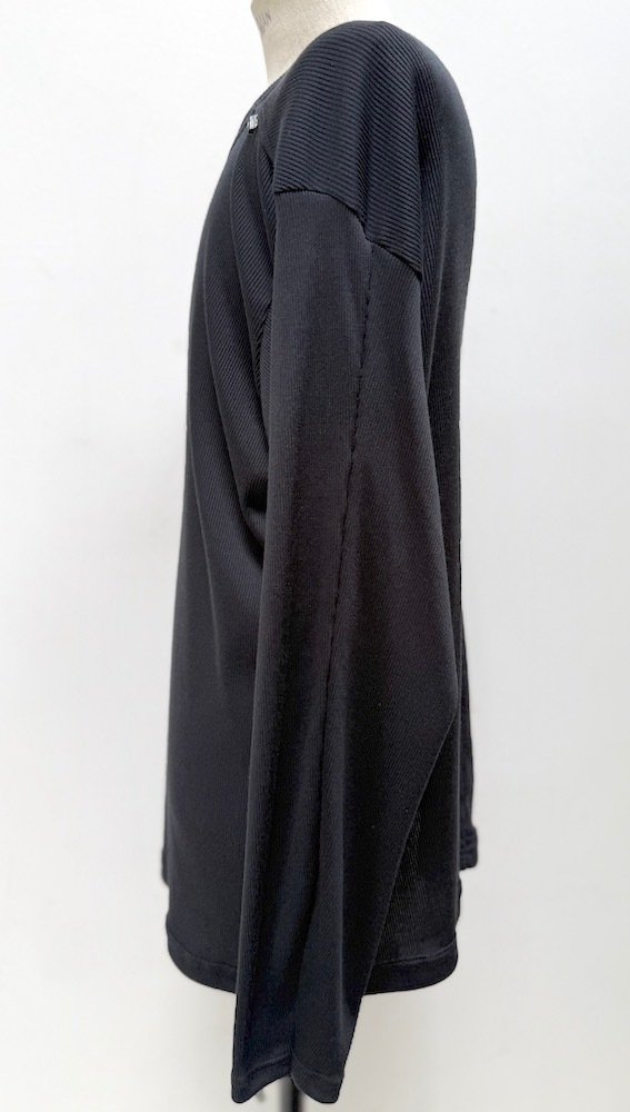【FranCisT_MOR.K.S. PLATING RIB PULL OVER】広めの身幅のゆとりで、ドレープバランスが秀逸。